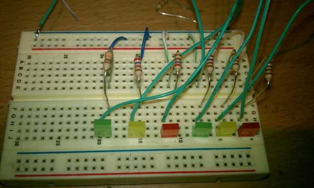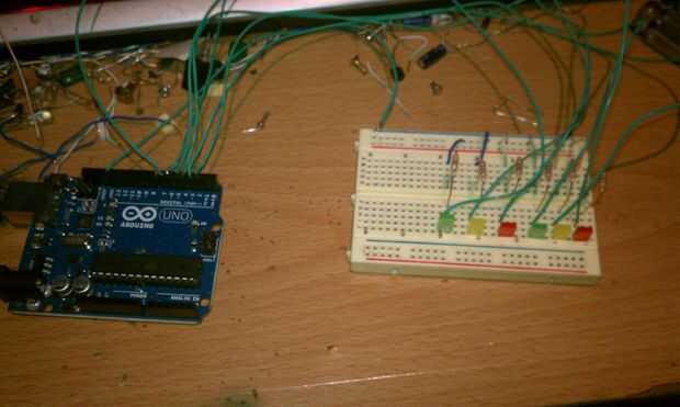 Lo que estoy haciendo es un probador de la batería con luces Led que también funciona en un Arduino.What que muestra cuánta batería queda en él por el encendido del LED. Para el cableado usé un tablero que me ayudó mucho. Por favor comentar sobre mi