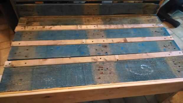 Utilizando algunos de los deckboards de la segunda plataforma, arrancaron los abajo que rellene los huecos en la parte posterior y el asiento. Después de un cuidadoso lijado para quitar cualquier astillas, estaba satisfecho.