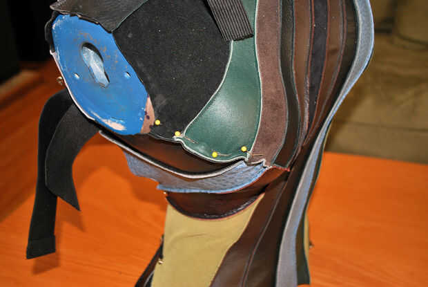 El área derecha busto era un poco perder, por lo que cubrió a una pequeña alteración antes de comenzar. Luego liberará los hombros delanteros y las costuras laterales y puso hacia fuera el frente del cuero en la mesa de trabajo. Luego liberará las correas elásticas sujeta la parte trasera en su lugar y había trazado demasiado. Una vez que el torso era libre, yo pude montar de nuevo el sujetador. La correa trasera era demasiado floja, por lo que me seguridad cubrió a cerrado y revisado en la parte delantera. Necesitaba un poco más relleno, por lo que puse en unos cojines extra busto y estaba listo para volver a colocar el cuero.