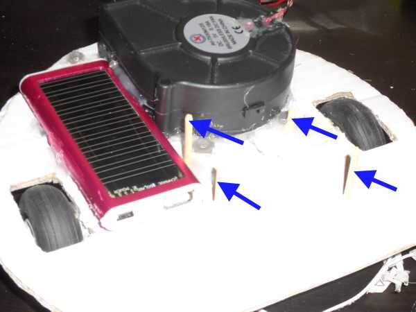 Palo de madera se fijan con pegamento para que la placa Arduino se puede poner en los palillos.