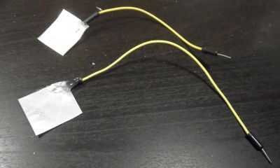Limpiar y raspar estaño y cables para mejores contactos. Piezas de estaño son conectados a los cables y fijo por el pegamento. Asegúrese de que el pegamento no se pone entre el estaño y los alambres.