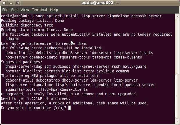 $ sudo apt-get install ltsp-independiente-servidor openssh-server.