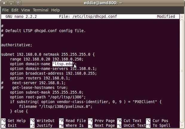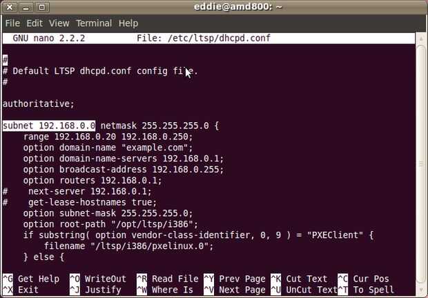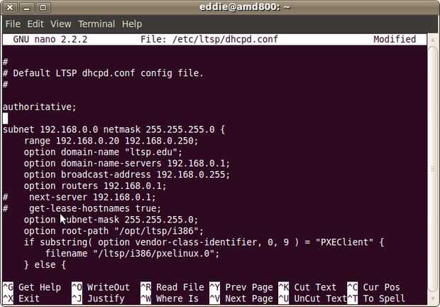 $ sudo nano /etc/ltsp/dhcpd.conf