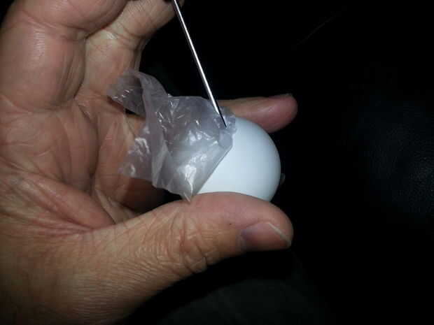 Muchachos locales les llamamos "bolsas" en el supermercado local. Si usted consigue los que son principalmente claros, bolsas de Co-op hacer maravillas, luego cortan solo los bits claro en formas cuadrado alrededor de 75mm, o 3" para los viejos de las Naciones Unidas, luego pincha en la bola con un destornillador pequeño, sólo tómate tu tiempo y no compactarla en allí.