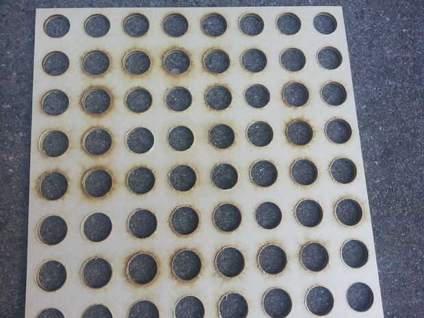 Una vez que están todos perforados y rellenos se llega a pegar a la Junta, una nota rápida aquí debería haber sido obvia a mí en primer lugar pero ayudar a pintar el marco antes de empezar a pegarse sus bolas en.