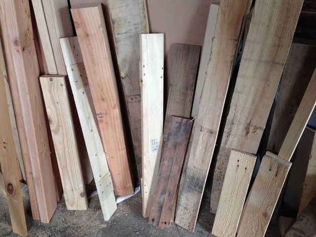 Voy a dar la cláusula normal de descargo en la madera de palet que puse en todos mis proyectos impulsado por la plataforma, como mucha de ella es información valiosa que aprendí la manera dura... Plataforma de madera es fácil de conseguir (y generalmente libre), tiene carácter y es divertido trabajar con. Siempre preguntar antes de tomar palets de un negocio (incluso si estás sentado atrás por el contenedor de basura), ya que muchas empresas tienen proveedores de plataforma que reembolsan sus paletas usado y tomando sin permiso es un robo "técnicamente". No estoy diciendo que no he hecho antes, ser amable y seguro. Yo prefiero usar una sierra circular o de vaivén para cortar los listones de final (los postes perpendiculares que las tablas de la plataforma en la parte superior e inferior) y finalmente utilizando un prybar para separar pacientemente los tablones de la viga del media. Aquí la palabra clave es paciencia - ir en las uñas desde todos los ángulos para evitar grietas y arruinando su madera de palet.
