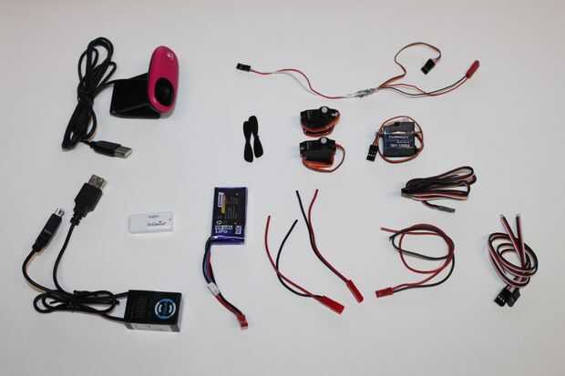 - Un pequeño ESC para cepillado DC motores con BEC, funcionamiento a 7, 4V (2S LiPo) y alrededor de 1A, he utilizado un Graupner 2857 Pico 2 BEC ($25)