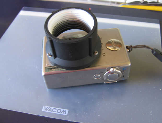 Ahora tengo que hacer el adaptador para mi digital elph S320 y poder utilizar la misma lente configurar atornillando el adaptador. Éste sólo cuesta un adicional de $3,50.