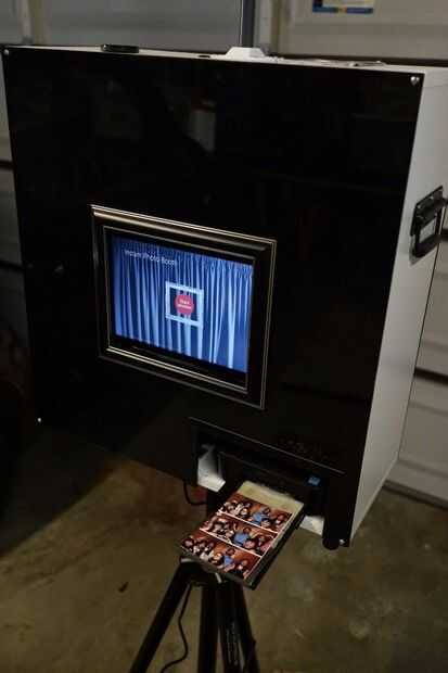 Aquí está una foto de mi photobooth. Hace deber doble con la parte delantera, siendo la foto tomando la lateral y la parte trasera es la foto de visualización e impresión de quiosco.