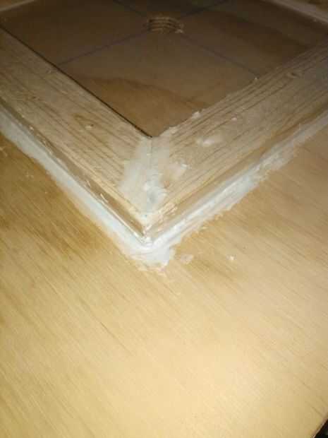 Una vez que cualquier masilla se seque, coloque pegamento todo el alrededor del marco de 1 x 2. Una línea continua de pegamento ayudará a evitar los vacíos de aire no deseado como calafateo alrededor de pegboard sería difícil. Finalmente, coloque la pegboard en el marco y deje que el pegamento se seque.