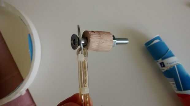 Nota: una importante mencionar es que el collar de madera se calcula tener una longitud que dejaría espacio para la lavadora mover y también termina la rosca donde se detiene. Esto es para poder enroscar la tuerca a estos últimos hilos y fuerza allí con dos pinzas o un par de alicates y una llave (apriete reaaaallly duro para que no afloje con el tiempo).