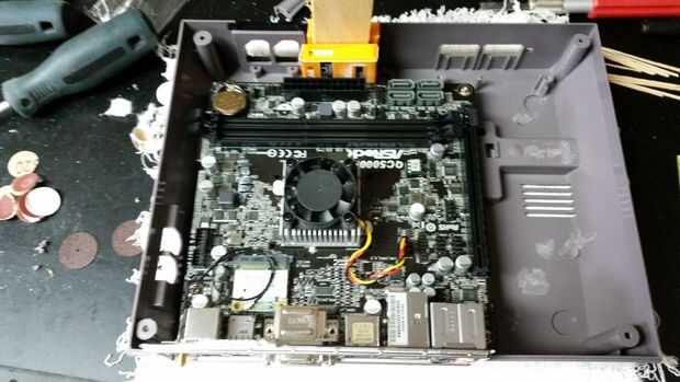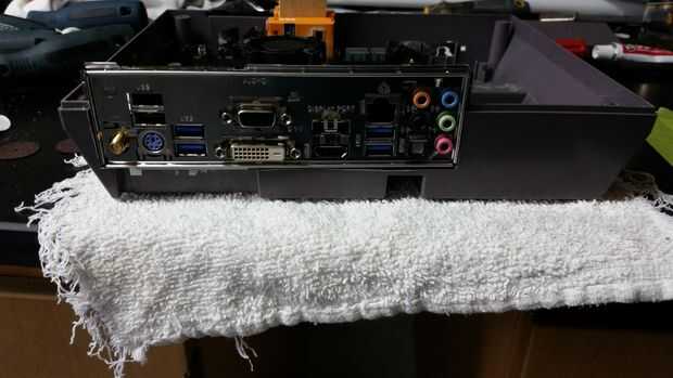 Paso 2: cortar agujero Motherboard, Tarjeta madre y pegamento en la placa trasera, poner Motherboard, Tarjeta madre y pegar separadores