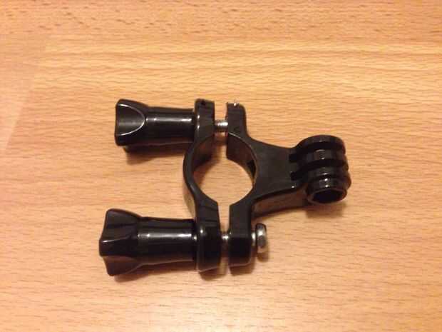 Los otros artículos que usted necesitará son un montaje del manillar GoPro, un 1/4-20 adaptador GoPro, un tornillo corto de 1/4-20 y posiblemente, una GoPro modificada apretando el tornillo de mariposa... O hacer uno tu mismo.
