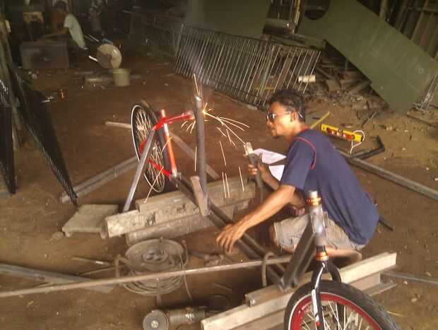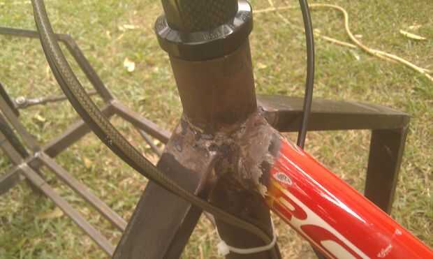 1. delantero y trasero headtubes, antes de soldar a la moto de donantes. Compruebe la alineación vertical. No suelde la bahía de carga todavía.