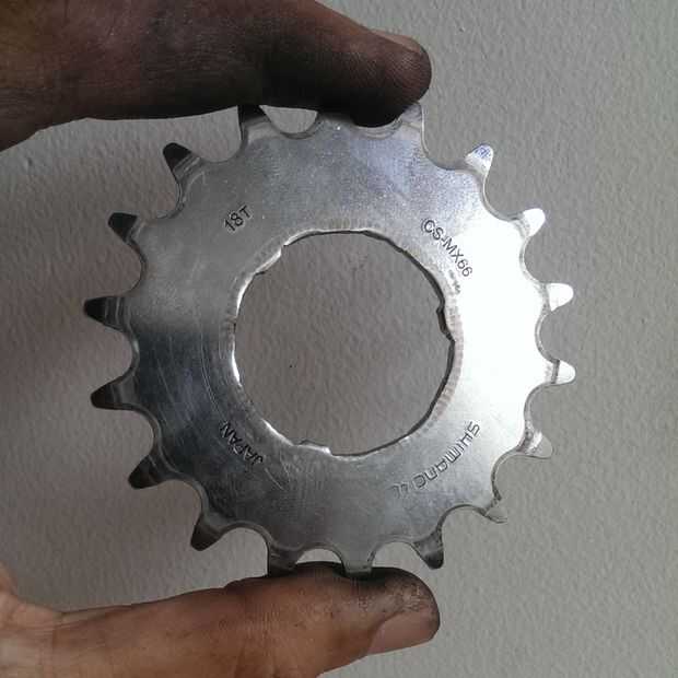 Oh, otro hack. Puesto que tipo de difíciles de encontrar en Yakarta piezas Shimano Alfine, tengo que improvisar para conseguir la corona 18T para sustituir la corona stock 20T. Terminé modificación cog Shimano MX66 BMX/singlespeed para montaje de piñón de Alfine.
