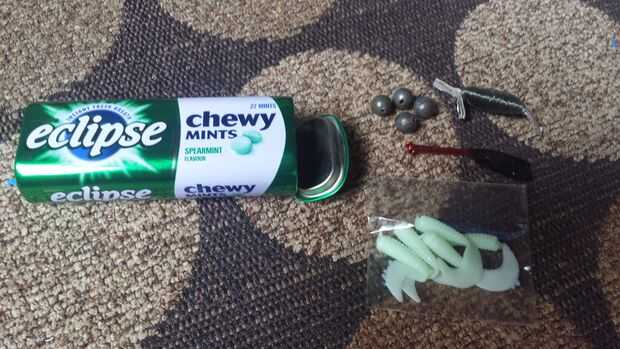 En mi mano pequeña lata de la menta (que también funciona como una caja buena Yesca), guardo algunos señuelos, unos ganchos (con cinta adhesiva los extremos de púas juntos para mantener en un grupo seguro), algunos plomos y un rollo pequeño de línea de pesca. Si estás en una situación de supervivencia, la idea de coger un pez probablemente va a sonar aburrido. Pero tener un buen pez para comer cuando usted está tratando de mantenerse con vida será digno de ese aburrimiento. Mantener en mente no es material resistente-no ir tratando de atrapar un gran tiburón blanco en esta marcha