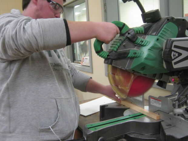 Cortar su trozo de madera en pequeños bloques de la pared.