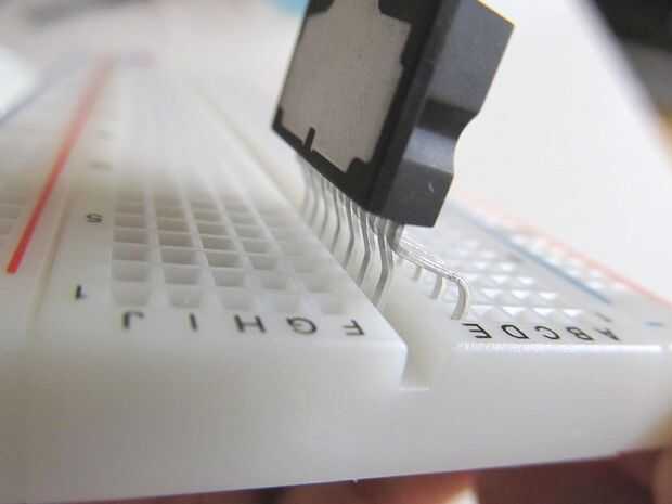 L298N debe enchufe en protoboard transzonales en la zanja de su centro. Pero dos líneas de pines de este IC no cuentan para esta conexión. Así que hacer dos ajustes para estos pines.