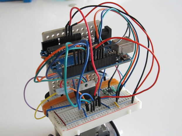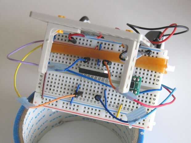- Una pequeña banda de goma alrededor de Arduino de viento y Monte en los ángulos de L parte superiores del cuerpo del robot