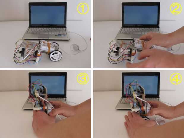 - Las ruedas del robot comience a girar, mantenga ambas ruedas apretado y parada de giro (ver imagen 3)