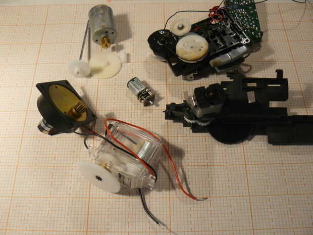 (2) velocidad de rotación del eje de salida: puse un trozo de cinta en el eje y aumente lentamente la tensión mientras observa la velocidad de la cinta girando alrededor, que depende principalmente del engranaje. Se desea encontrar la velocidad que funciona con un voltaje de 1.5, 3, 4.5, 6, 7,5 ó 9 voltios - por lo que puede hacer coincidir un paquete de baterías. Ralentizará como descarguen de las pilas, pero otra vez, nada es verdad aquí demasiado crítico.