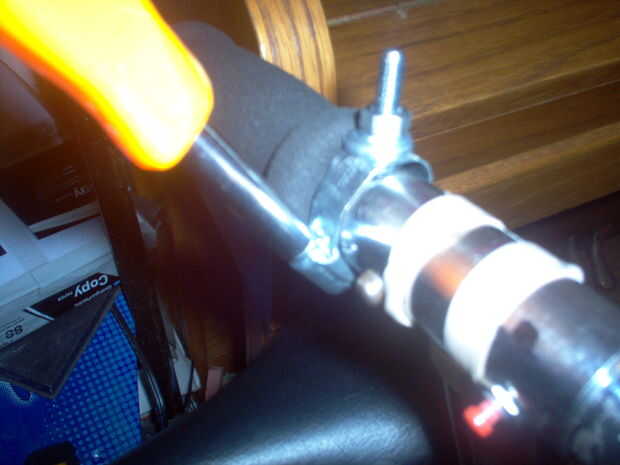 así que con el producto terminado, debe tener una manguera abrazadera con un tornillo de 1/4 de pulgada que se pega por el lado. para montarlo, elegir un lugar en el manubrio, mientras la abrazadera de la manguera puede ajustarla. poner la abrazadera de la manguera en él para un agarre para que no se mueva el montaje, poner alguna cinta aislante debajo de él. Apriete con el destornillador. debe ser por ahi bueno y sólido.