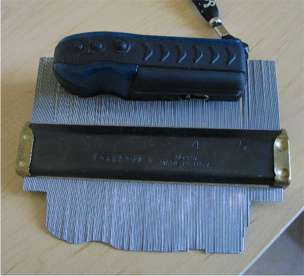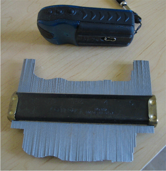 Yo he presionado la parte posterior de mi gps en la herramienta para capturar la forma que tengo que hacer fuera del metal.