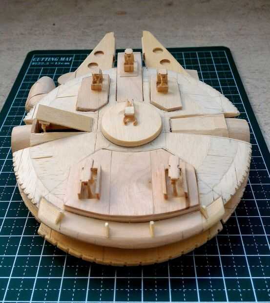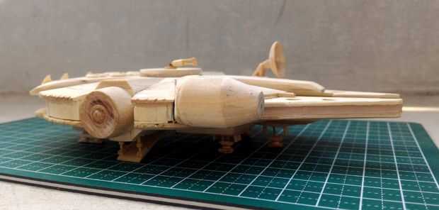 La construcción consistió en tres subconjuntos principales-el medio, superior e inferior casco subconjuntos. El verdadero desafío para este proyecto era en la fabricación del casco superior e inferior del halcón debido al enorme tamaño de la nave. La construcción ha agotado mi totalidad de las acciones de palitos medianos de depresor de lengua que tuve que correr a una tienda local de drogas para reponer los materiales para terminar el proyecto.
