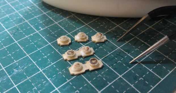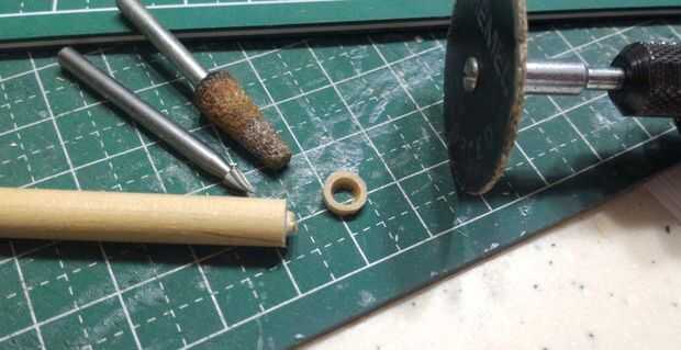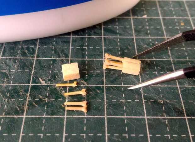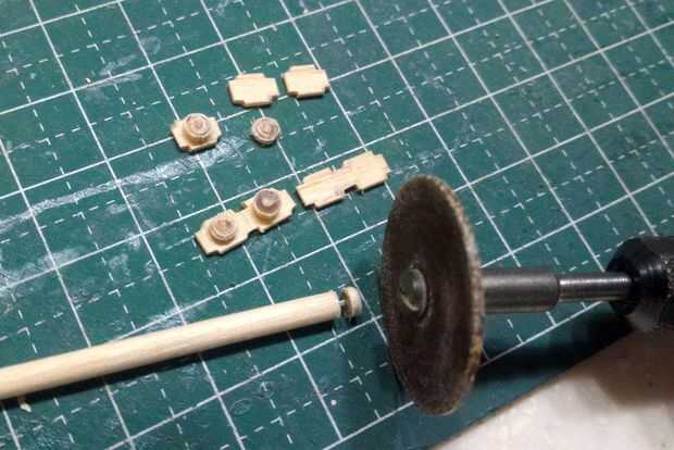 El cuádruples cuatro cañones eran de fino formadas escarbadientes con el extremo más ancho en rodajas utilizando un accesorio de la rueda de corte regulat. La forma de media luna de cada uno de los extremos del cañón cuando utilizando un accesorio fino lijadora de disco.