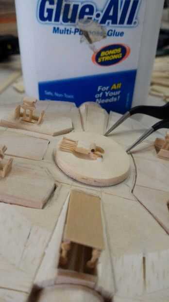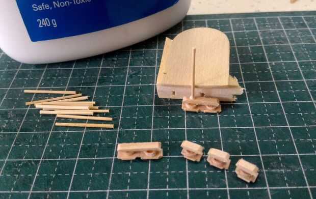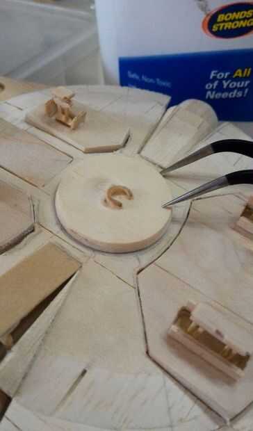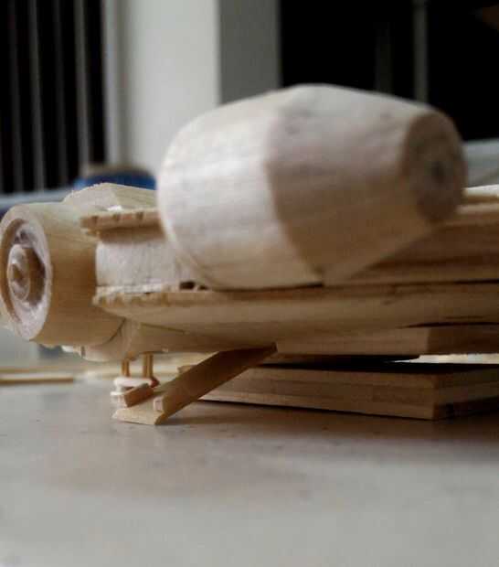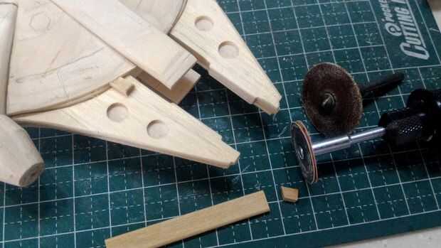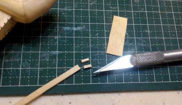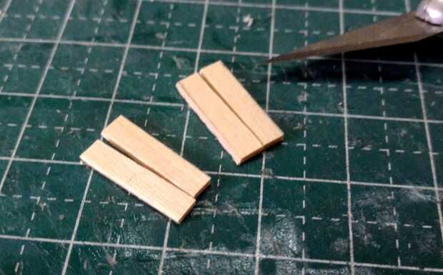 Los montajes del puntal de aterrizaje pequeña, rectangular eran de desecho, agitadores de café madera, corte en tamaño con un cuchillo x-acto.