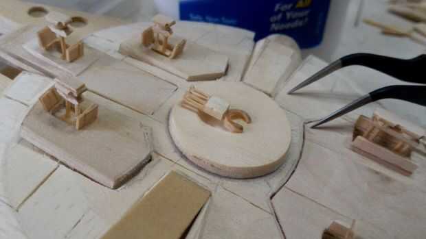 La rampa fue hecha de chatarra, palito depresor de lengüeta de tamaño. El tamaño de la rampa fue modelado después de la separación del corredor de acceso a estribor, inferior.