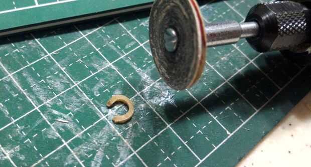 El pistola semi circular de montaje fue creado utilizando los mismos pasos en la fabricación de los escudos de calor circular. Un agujero fue perforado en el extremo de la espiga y rodajas finas utilizando un accesorio de la rueda de corte regular. El pistola semi circular de montaje se terminó utilizando un accesorio fino lijadora de disco con una herramienta de la moto.