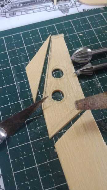 Para hacer las bahías de acceso circular, fue perforado un agujero piloto usando un #125 entonces un accesorio de corte de alta velocidad #124 en una herramienta de la moto. El orificio piloto se terminó con un óxido de aluminio #953 accesorio piedra de pulir.