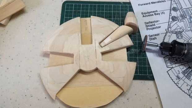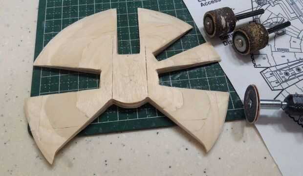 El casco plano conjunto, similar al casco inferior, fue tallado en un pedazo de disco usando una combinación de fijación de lijadora de tambor grueso/fino en un Dremel 3000.