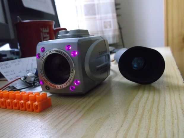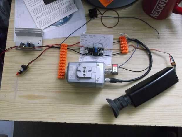 Imagen aparece en la pantalla del visor. Esto significa que todo circuito funciona bien. Si va a haber algunos artefactos en la pantalla, intente poner el condensador electrolítico entre las líneas de alimentación de visor. Reloj para la polaridad, el electrodo negativo de los condensadores debe ser conectado al electrodo positivo y terminal de voltaje negativo al borne positivo! Yo he usado 330uF/16V y 1000uF/16V probablemente sería aún mejor.