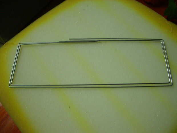 2) Hacer dos rectángulos con los alambres, largos como el ancho de la notebook y de unos 10 cm de alto. Es preferible, pero no necesario, uno de los rectángulos mar 1 cm más chico en ambas dimensiones. Eso facilitará el plegado
