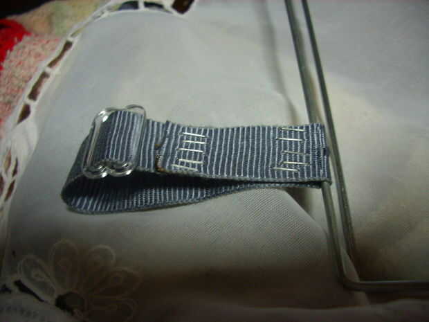 4) Colocar con la abrochadora un lazo de cinta con hebilla en cada extremo del lado largo y libre de uno de los rectángulos