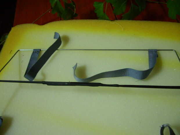 5) Colocar un trozo de cinta en el lado opuesto del otro rectángulo.1) rasgado abajo y enderezar los ganchos de alambre