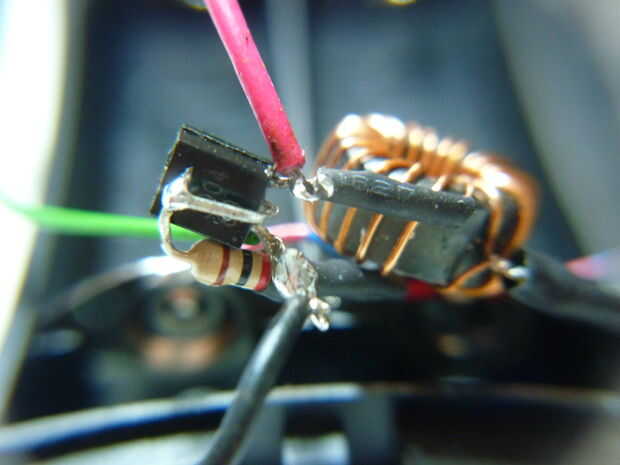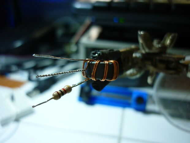 quiere un circuito Joule Thief en un paquete brillante delgado? ¿Puntos geek grave es alta en la agenda de la manitas de la visión de futuro y qué mejor manera de hacerlo que con las tripas recicladas de una unidad de disquete, paso a paso motor o pr