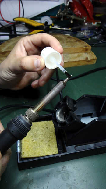 El flujo estañado tiene duplice propósito: evitar la oxidación de su hierro punta de soldadura y ayuda a fluir más fácilmente en el punto de soldado de la lata.