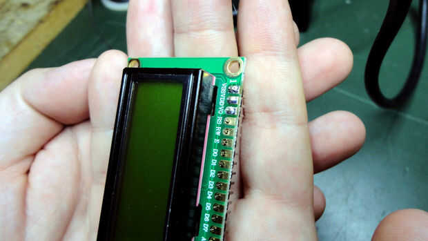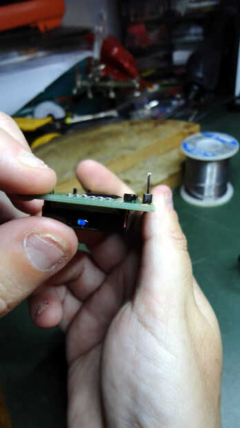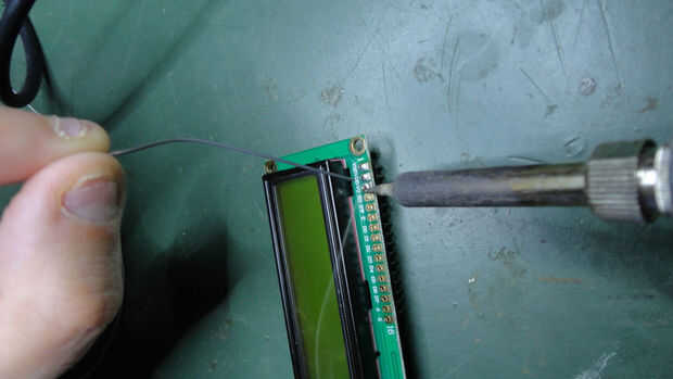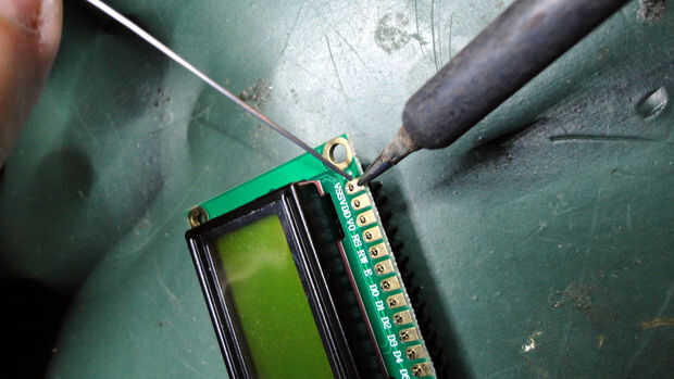 Acaba de realizar la primera soldadura, comprobar si el jefe del perno es perpendicular al circuito. Esto es realmente importante si desea que la pantalla LCD se ajusta en un protoboard.