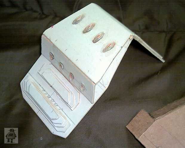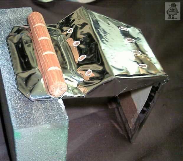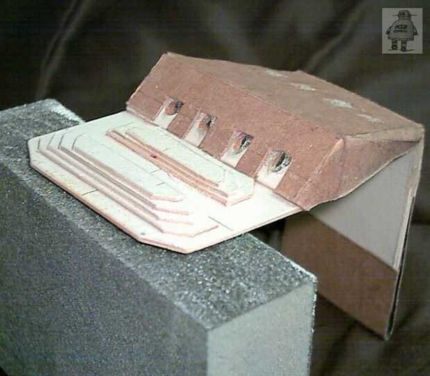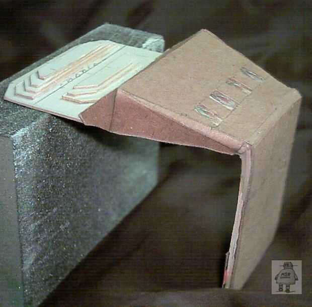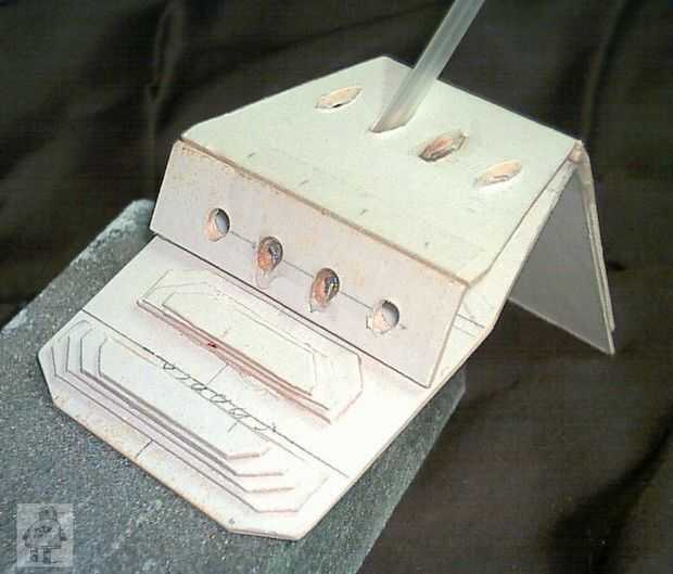 Se realizó una cubierta de la tarjeta fina para cubrir el puente para cerrar en los lados y Sobrehilar por procedencia a través de los tubos. Las lengüetas de los lados doblan hacia abajo cuando se pega en su lugar. Después de que el pegamento está seco, cortar a lo largo de los bordes para obtener el borde inferior al ras.
