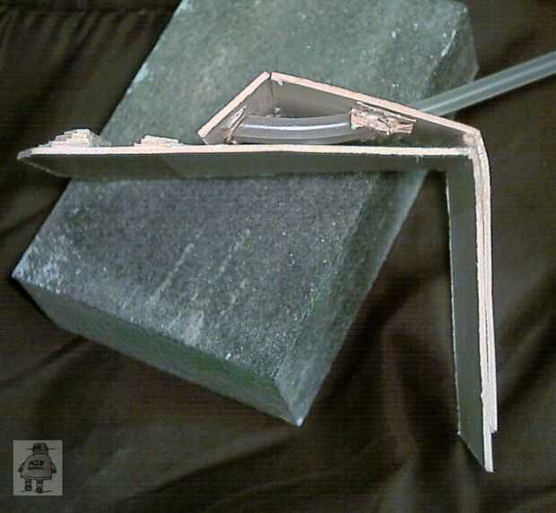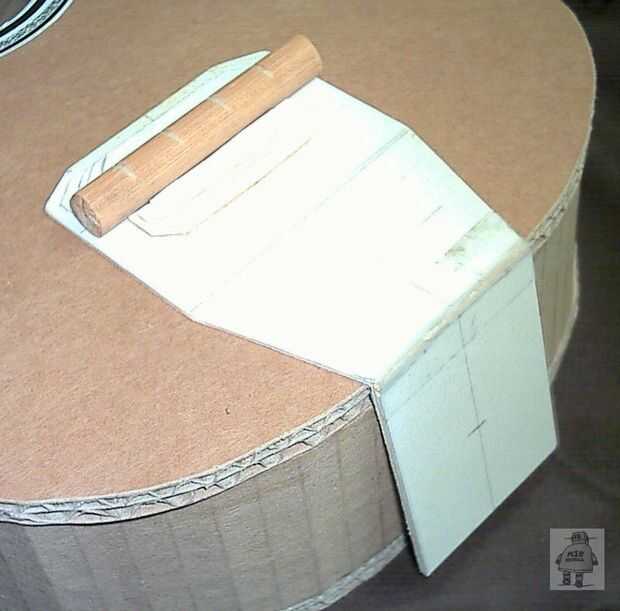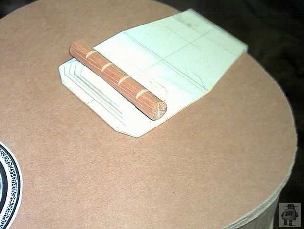 A continuación, una segunda pieza de la mesa de trabajo fue cortada como se muestra, las cuerdas se rosca a través de este.