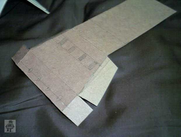 El puente se construye a partir de la blanca mesa de trabajo. No usar una plantilla para ello, las dimensiones no son realmente importantes, pero tiene que colocar el sillín a 340mm de la tuerca, la longitud de la escala del instrumento y debe ser aproximadamente tan ancha como la silla de montar (60mm).
