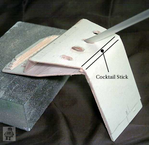 La parte superior del puente entonces se pega en su lugar contra el respaldo de la silla de montar, y un palillo cubierto de PVA se utiliza para fortalecer las articulaciones en ambos ángulos agudos. Corte las puntas repuestas apagado cuando el pegamento se seca.