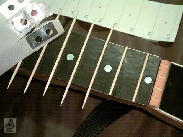 Ahora estás seguro que sabes donde van los trastes. Marca frente a la plantilla sobre el diapasón con un bolígrafo/bolígrafo y empujar duro para obtener un surco en la cartulina. Esto proporcionará una positiva sensación de "clic" cuando llegue el traste en su lugar.
