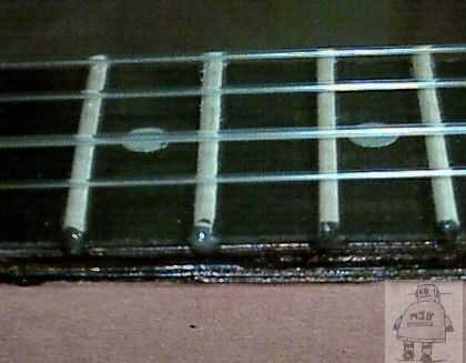 Hice la acción bastante baja, (un octavo de pulgada en el traste 12) y encontré que había unos zumbidos de trastes. En lugar de tomar las cuerdas apagado, ajuste, etc. restringing. Ajusté los trastes con cadenas en su lugar, doblando a un lado y el traste que raspa con una cuchilla sin filo x-acto. No slip! Rascado, corte no. Una hoja sin filo es ideal para eso.
