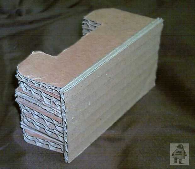 Esto es donde el cuello se ranura, por lo que su tamaño interno debe ser un ajuste muy cercano al cuello que creó. Utiliza la forma general de la plantilla de cuerpo de eplunkett y este corte de 7 capas de doble pared, con un par de capas de pared simple. Necesita para hacer una pila que llenará exactamente entre la parte delantera y trasera el ukelele, y la misma altura que el bloque de la cola.