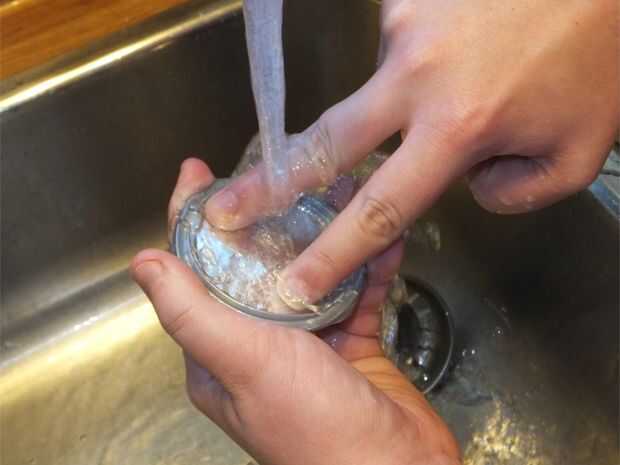 2. ahora el espejo... ahora que la bandeja del polvo está hacia fuera, la posición la llave de agua muy caliente y colocar el Pacto bajo el que fluye agua caliente durante un minuto o así...