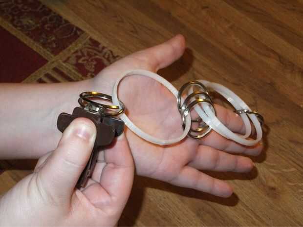 Sólo hacer un tubo o una banda con un orificio de diámetro de 64mm y hacer el diámetro exterior de unos 72mm luego hacen unos 6mm de alto. Se adornan con unos anillos de plata llavero y luego podemos agregar teclas de efecto o pequeñas cadenas. Hay toneladas de artículos en las tiendas de hobby para agregar así que cualquier cosa es posible a partir de este punto de partida.